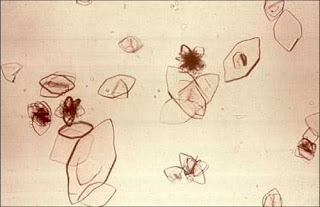 coffin-lid struvite crystals associated with urea-splitting bacteria